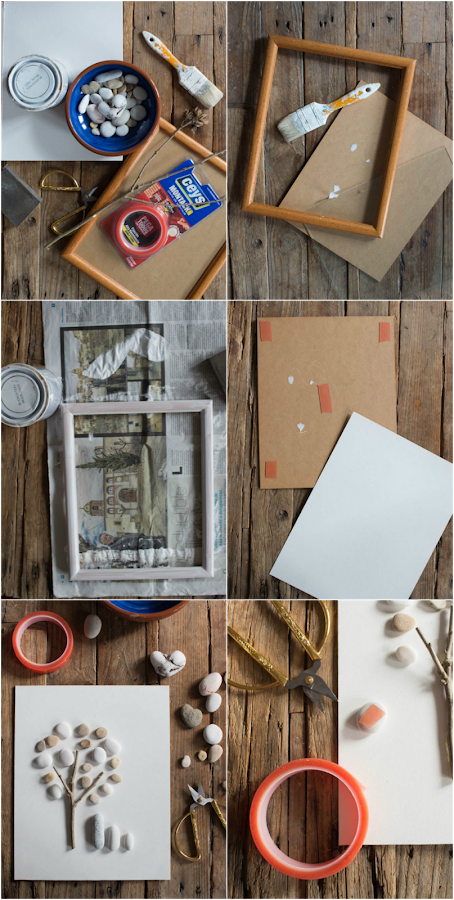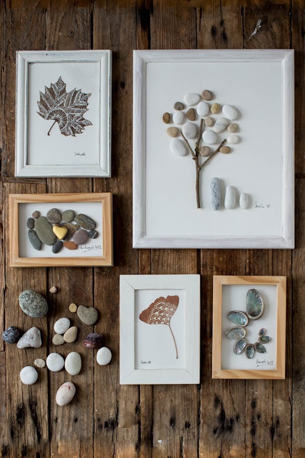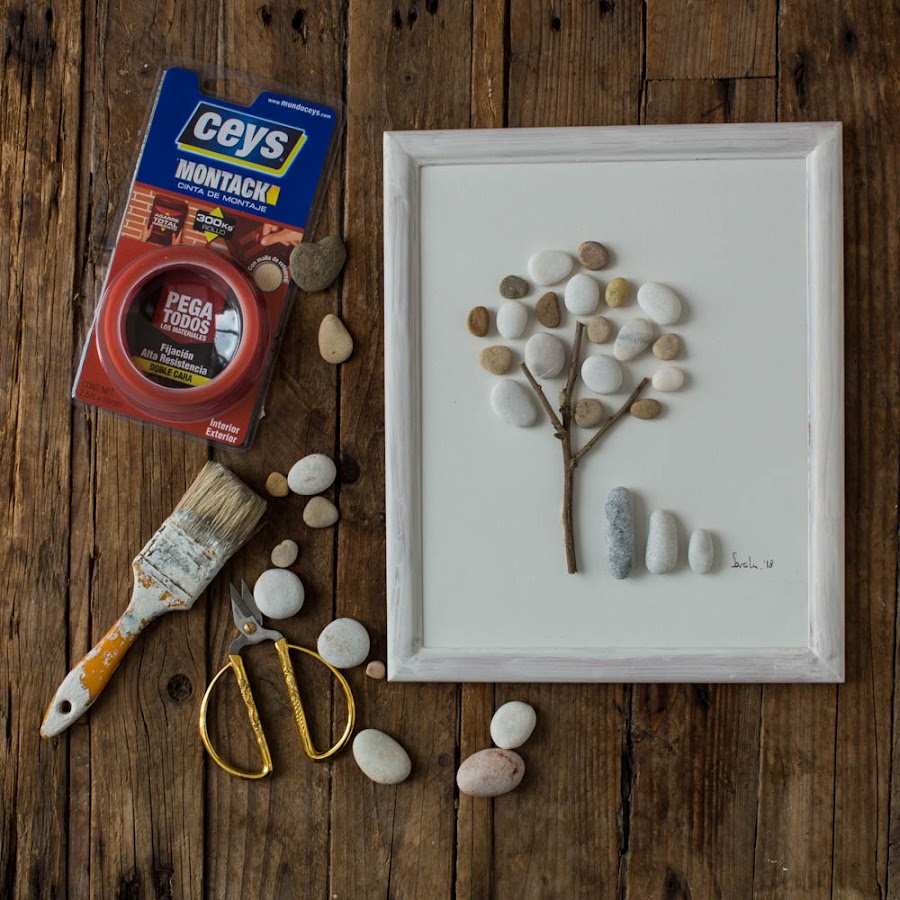 No es la primera vez que utilizo piedras para un DIY, ya lo hice anteriormente en estos cuadros de peces y en estos otros. Es un material que me encanta, pero a veces es un poco complicado de utilizar debido al peso que tienen, ya que no es fácil que queden bien pegadas a la primera para que no se caigan.