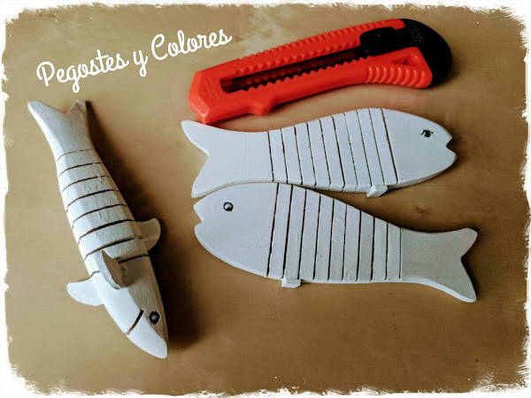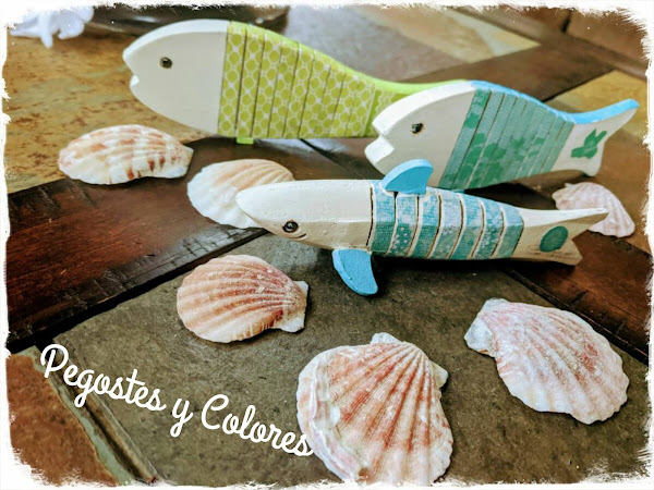 Esta vez escogí el tema marinero, cuando en una de esas vueltas a la tienda del dolar vi que tenían animales de madera movibles. Ya antes había visto serpientes de madera (que no me gustan) y de pura casualidad que me acerque porque necesitaba conseguir un atomizador pequeño para mis acuarelas (últimamente tienen muchas cosas para manualidades y cosas de madera para diyear) y fue cuando descubrí que habían puesto peces y tiburones.