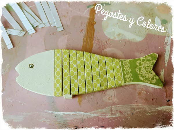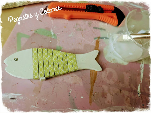 5.- Para la parte de las aletas de los peces también pegue adornos del mismo papel scrap.