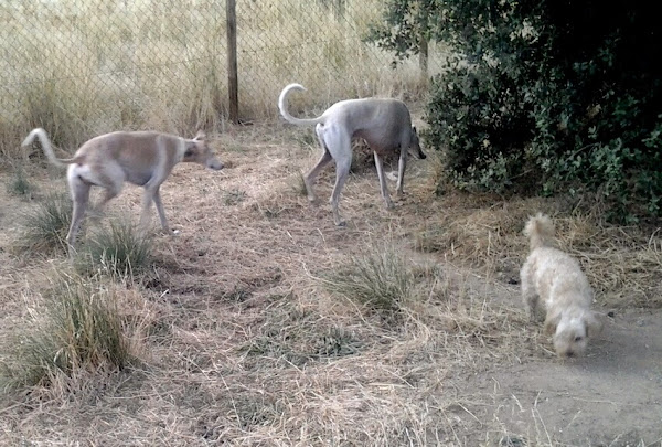 Otra cosa que me ha llamado la atención es que es un perro de manada de pueblo y me he acordado de cuando niña me iba al pueblo de la abuela. Con salir a la calle todo el mundo se interesaba por todos y se saludaba a todas las personas. La galga hace lo mismo. Salimos a la calle y se interesa por toda la gente y por todos los perros y claro aquí, en la ciudad, nadie habla con casi nadie y a la pobre ya la han ladrado frenéticamente y muchas personas se alejan de su simpatía al ver un perro grande que va a olerles.