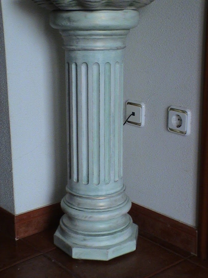 Este pedestal lo compré para poner una fuente que me regaló mi marido. Es marmolina mezclada con escayola (eso me dijeron en la tienda).