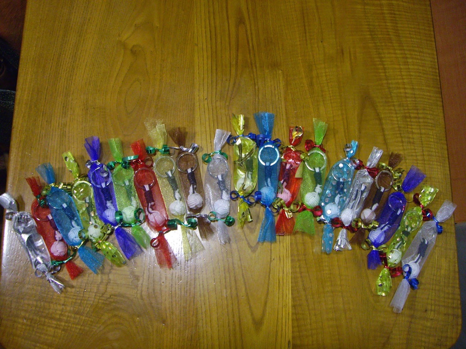 Empezamos con los pedidos para comuniones, en esta ocasión unos llaveros de puño de mono en blanco y azul marino, los colores del traje de comunión del niño. Estos se van para Salamanca.