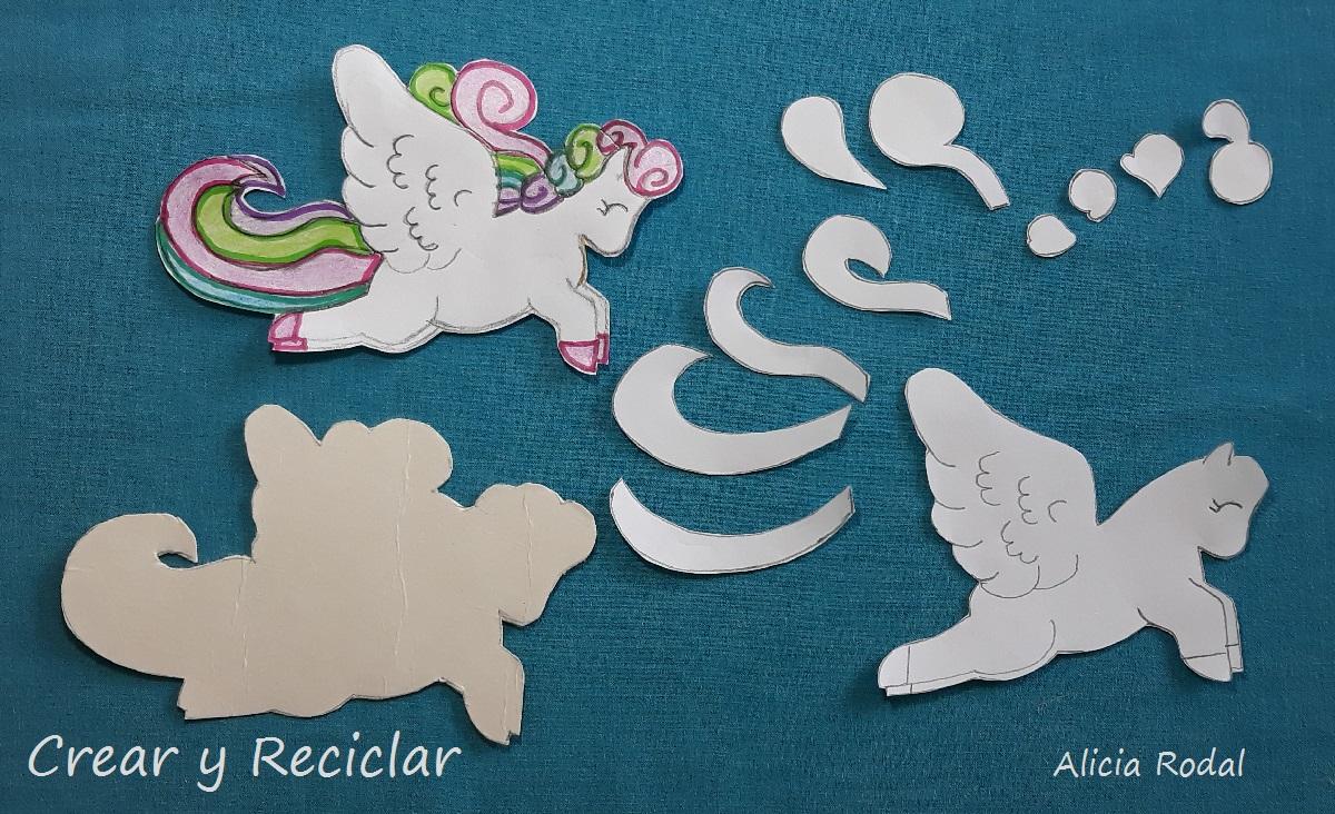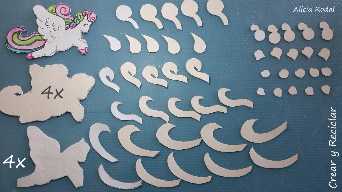 Esta misma idea te puede servir para hacer un unicornio, tan sólo debes quitarle las alas y ponerle el cuerno en la cabeza a la altura de la oreja.