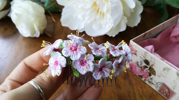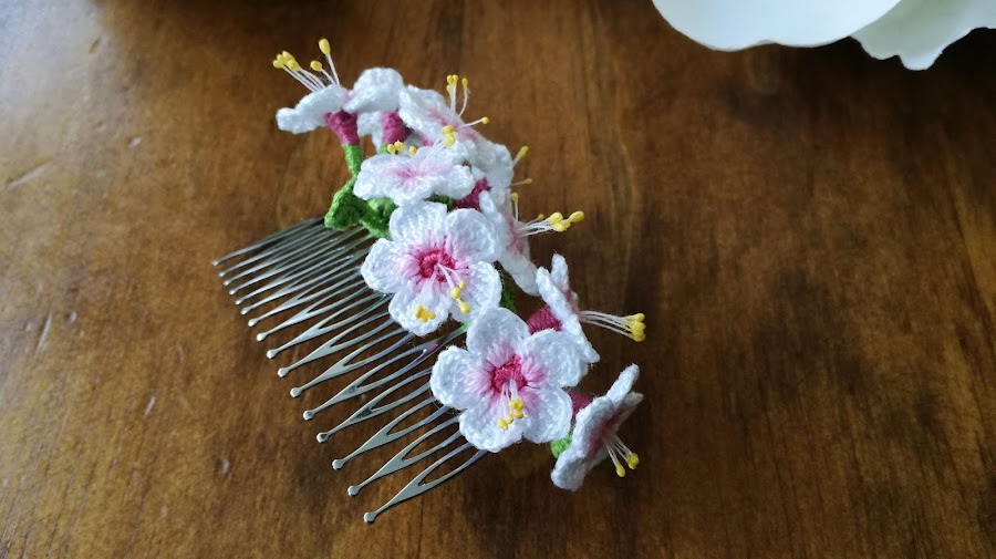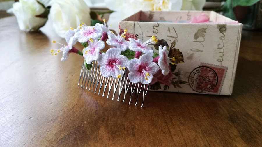 Hace tiempo que tenía pensado hacer complementos de crochet de inspiración floral, y como hace poquito fué la comunión de mi sobrina, tuve la oportunidad perfecta para probar y hacer una peineta o tocado de flores.