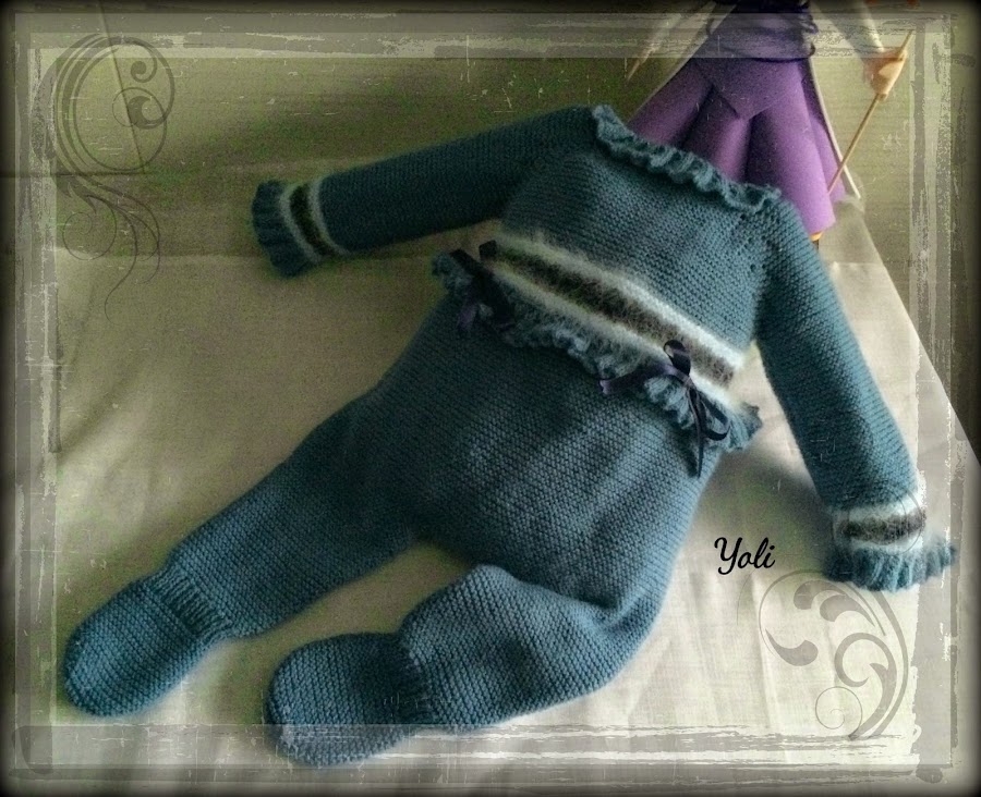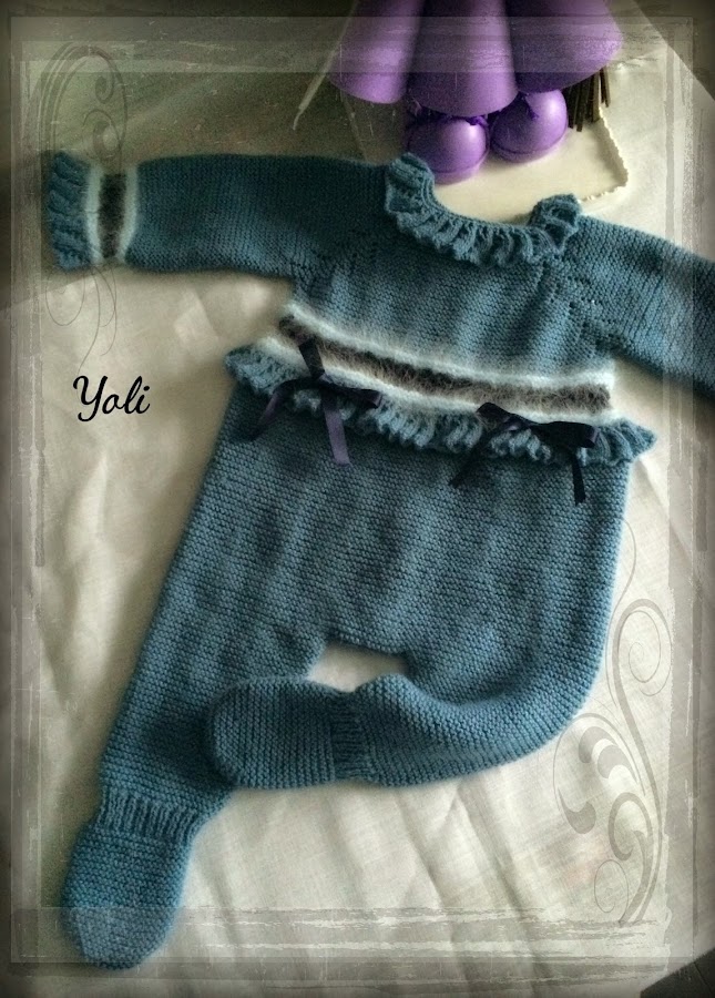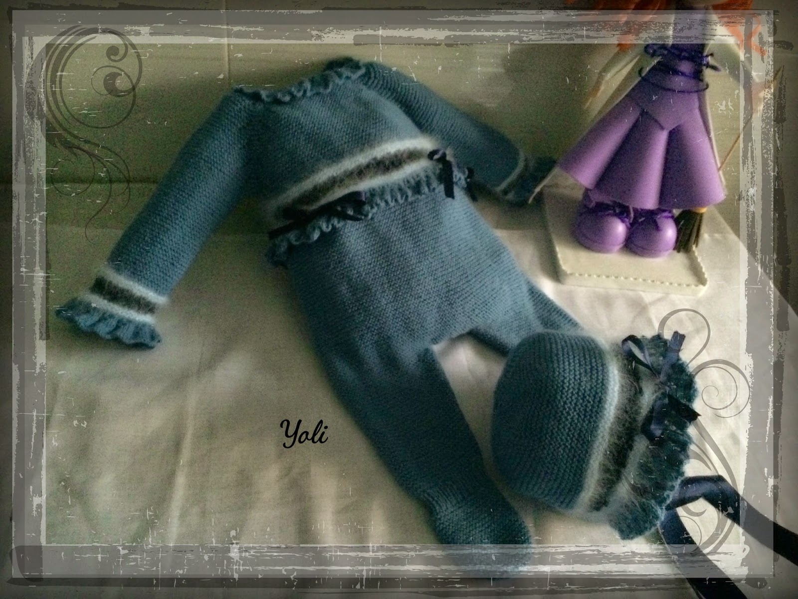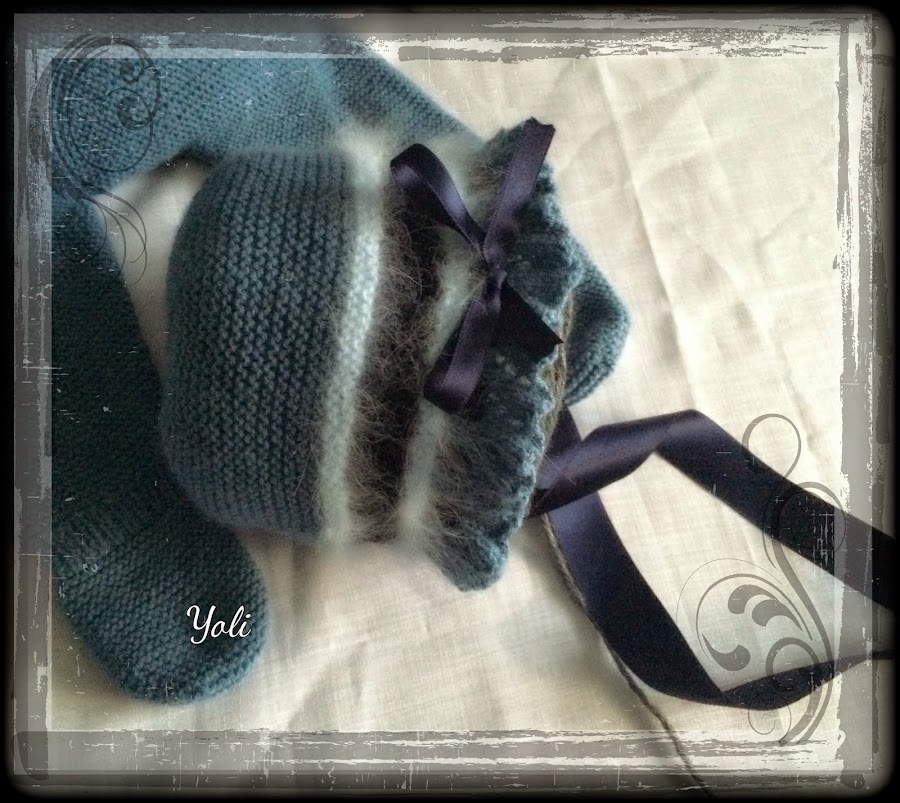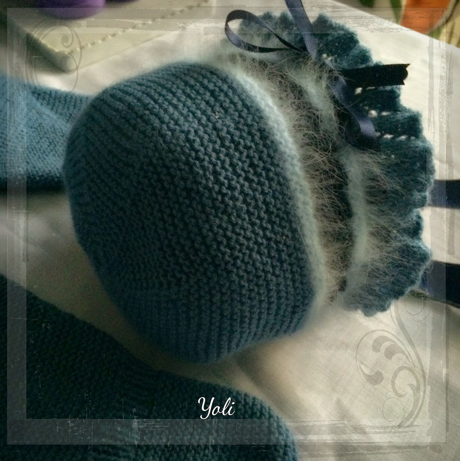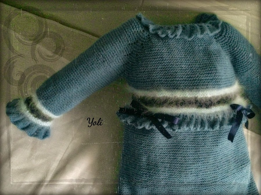 Esta tejido en lana suave de bebe de la marca ma-ma, color azul azafata, los toques de angora, en tono celeste y para el punto garbanzo utilice perle azul marino, rizando en rizo ajjajajajajaaj