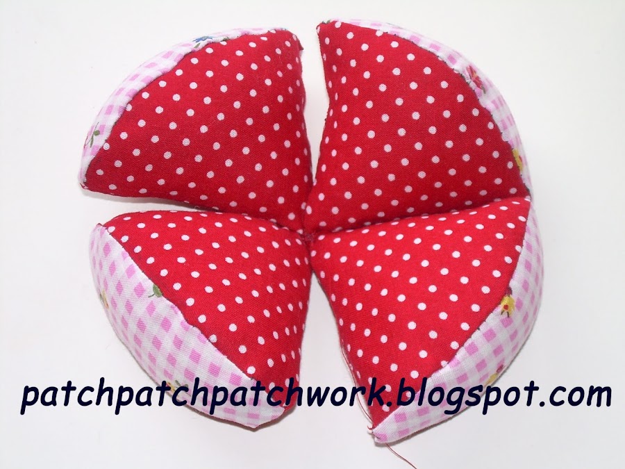 Tendréis que dejar una abertura en cada triángulo para rellenarlos de guata.