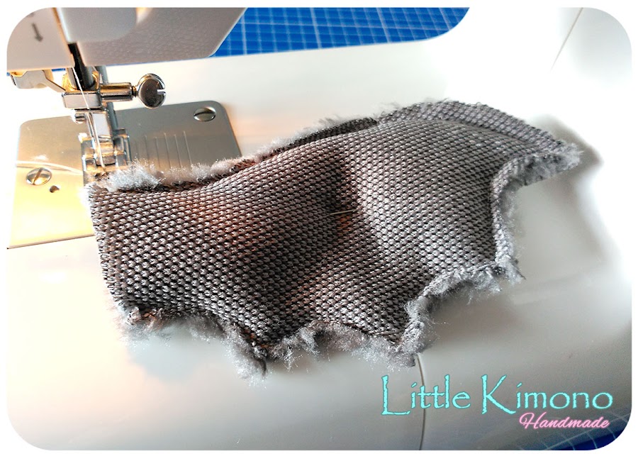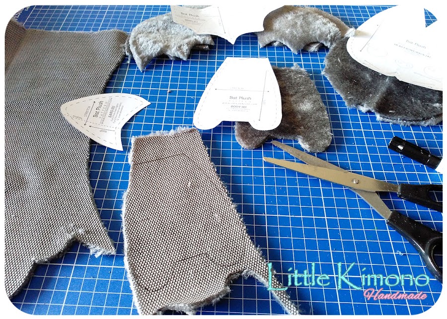 Vale, os cuento, para mi pequeña murcielaguita usé tela de pelo corto color gris que aún me quedaba de la capa - disfraz de Totoro que hice el año pasado ^^ así que era ideal para darle un toque aún más kawaii por el tacto que tiene tan suave, cortamos todas las piezas y reservamos para ir rebajándolas por partes.