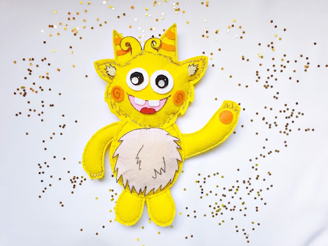 El Monstruo amarillo de la Alegría forma parte de mi proyecto Caja Regala Emociones en la que he ido transformando a los dibujos de los monstruos de las emociones en peluches para darle vida.