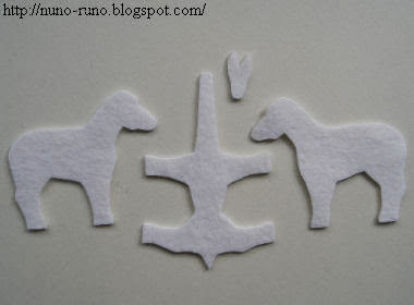 El segundo caballito está confeccionado con fieltro celeste y crines de estopa. He aquí la descripción de la fabricación: