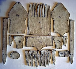 Para confeccionarlo uniremos por medio de una costura pespunteada los dos laterales del cuerpo (A y B), pero a medida que se efectúa esta costura se van incluyendo el resto de las piezas, sujetándolas en los lugares correspondientes, de forma que coincidan las letras minúsculas, con sus homónimas.