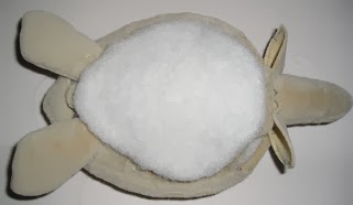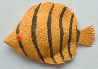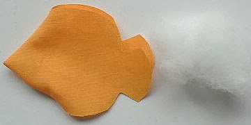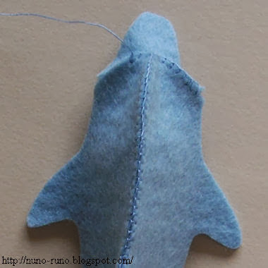 Poner un poco de relleno de fibra. Cosa las aletas y corte en zigzag las aletas.