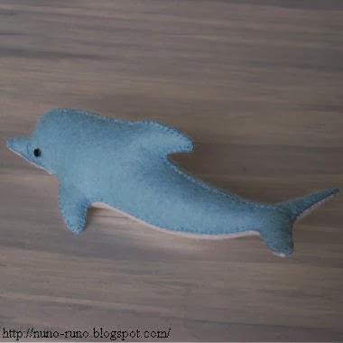 Delfín de peluche de fieltro. 13 centímetros.