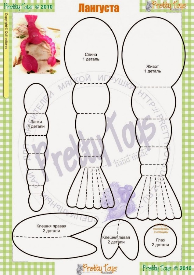 http://prettytoys.ru/workroom/?sec=406 (Delfín doblado,cangrejo de río,otro cangrejo,peces ángel,pez brillante,tortuga marina 2 y foca blanca)
