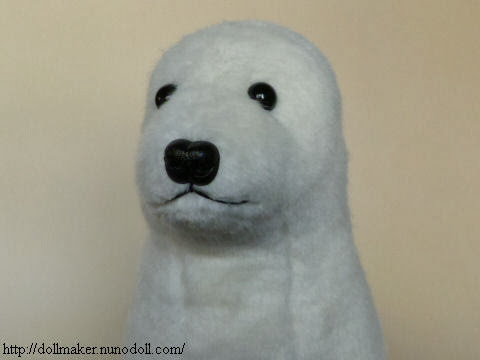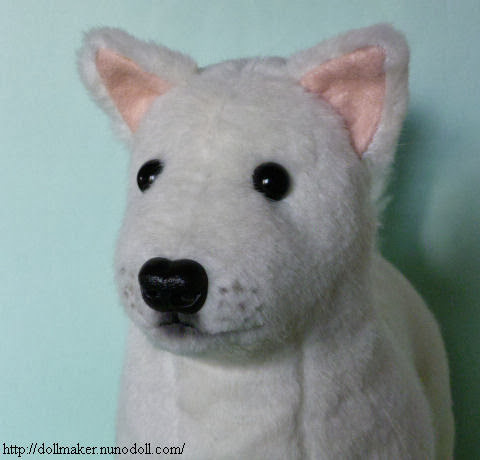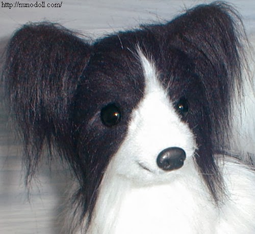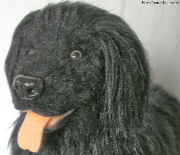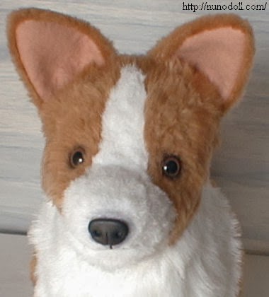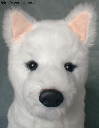 Cuando es un cachorro, el pelo de la oreja es corto. Mide 28 centímetros (hasta la cabeza ). El cuello puede girar.Esta elaborado en tela de peluche Negra y blanca. Los ojos son negros de cristal y la nariz de arcilla.No lavable.