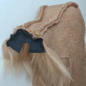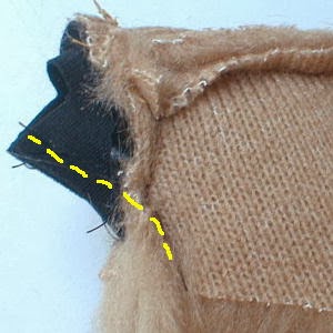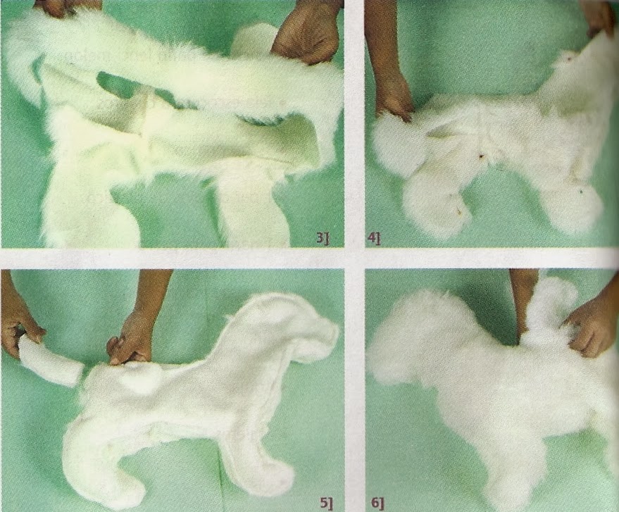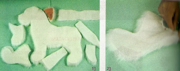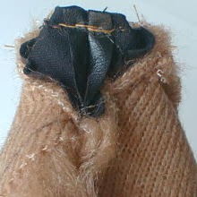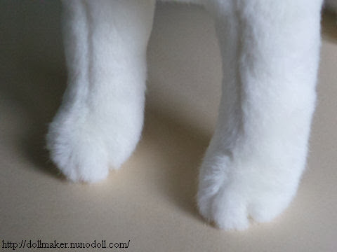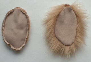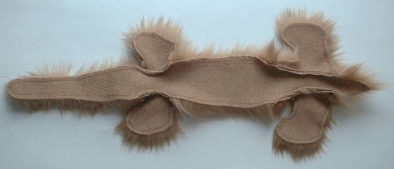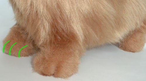 Recortar el pelo de las patas,como en la foto.Coser remarcando los dedos de las patas con un hilo grueso (puede omitir este paso).