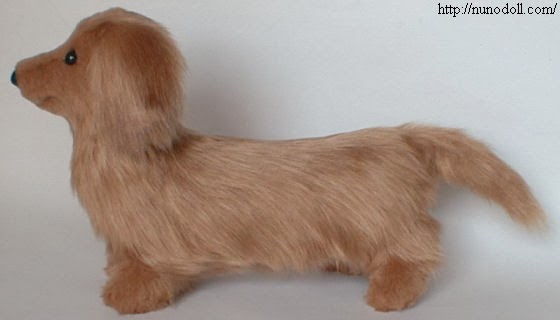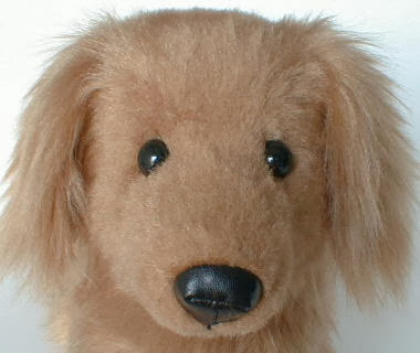 El Golden Retriever es un perro amable y trabajador. Altura de 20 centímetros (desde patas delanteras a cabeza). La postura de las extremidades es fija pero el cuello puede girar. Marrón de piel es el mismo color que el Dachshund . Los ojos negros son de plástico.
