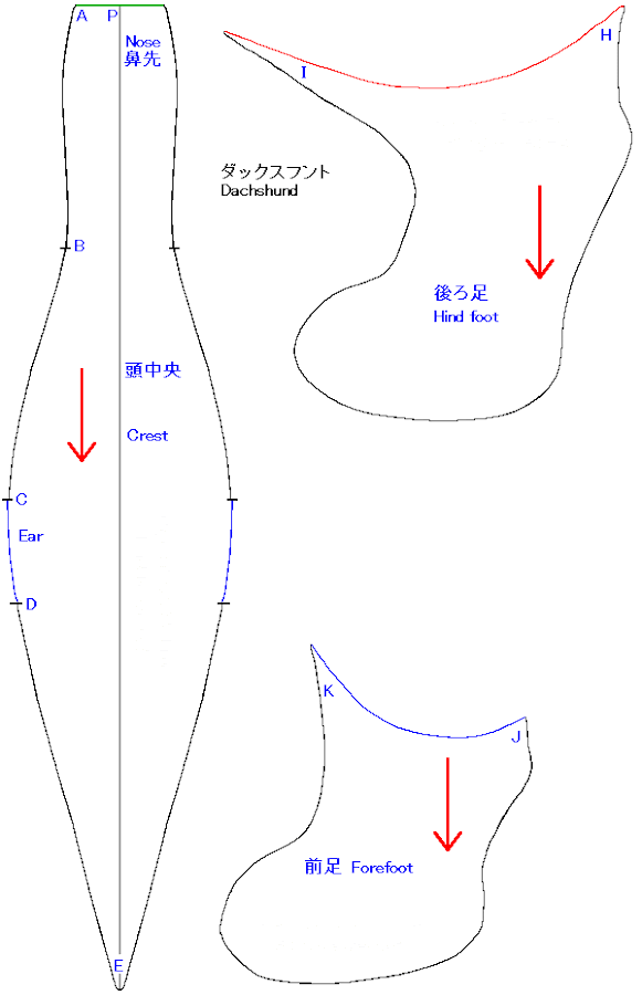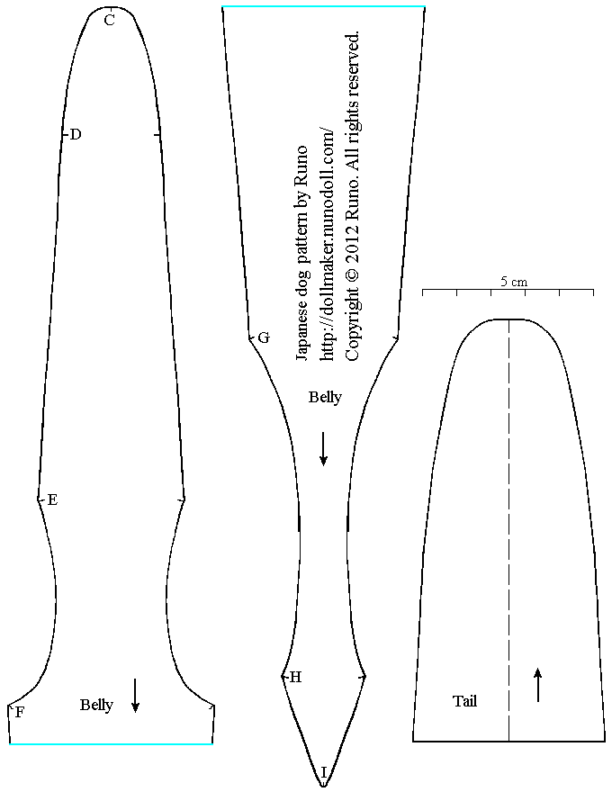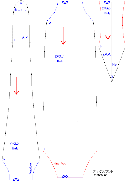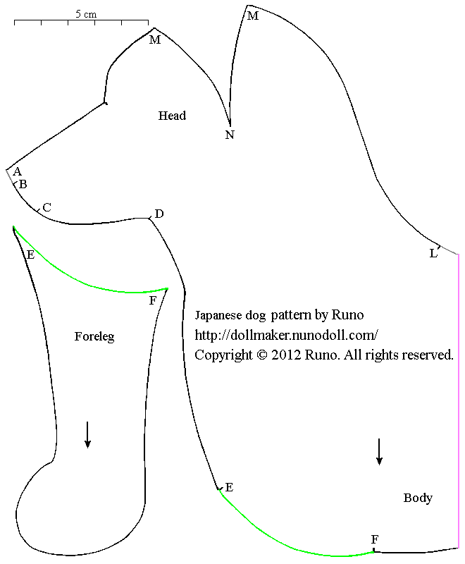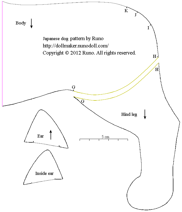 Agregar margen de costura (5-6 milímetros).Partes del perro japonés