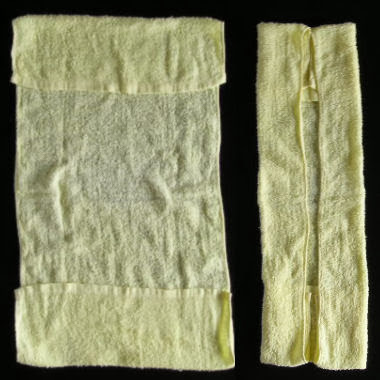 - Plegar la toalla por arriba y abajo como se ve en la foto.