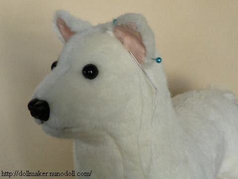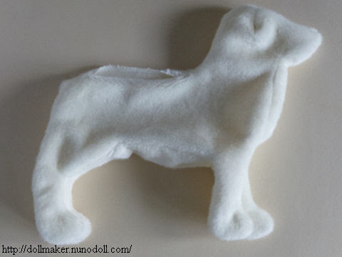 Rellenar con relleno de fibra de poliéster. El hocico es duro,por lo cual hemos de rellenar un poco más prieta esta zona.El cuerpo es bastante suave,por lo que lo rellenaremos más repartido y condiciones.