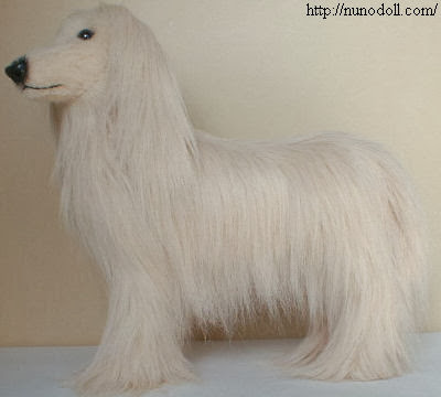 El perro de caza afgano corre rápido y tiene buena vista. Ojos marrones y la nariz de plástico negro. El pelo es largo,de color marrón claro. 33 centímetros (Desde el dedo del pata hasta la cabeza).tiene cables en las extremidades y el cuello puede girar.