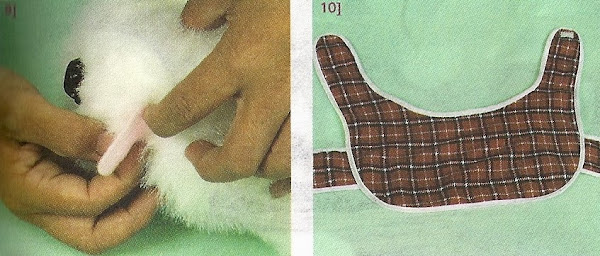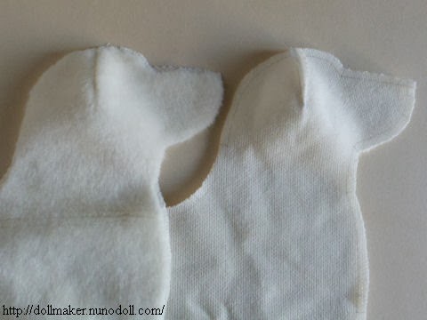 3º- Coser las piezas de las orejas con paño lenci y luego unirlas cosiendo como corresponde.