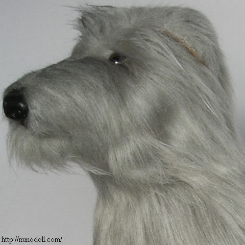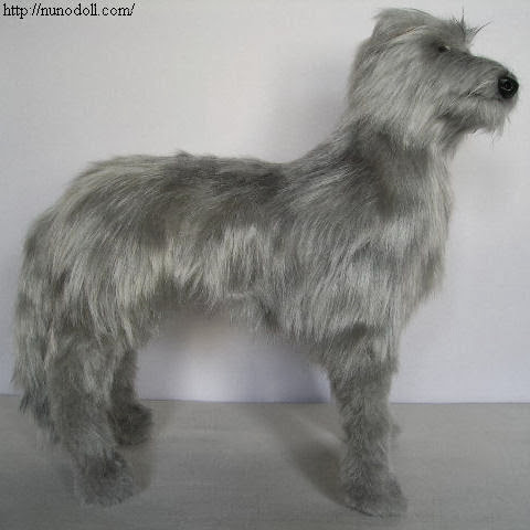 Este Scottish Deerhound tiene el pelo gris plata y ojos marrones. Mide (34 centímetros hasta la cabeza).Naríz de arcilla de color negro.Las orejas son cortas y pequeñas.Tiene cables en las extremidades. El cuello puede girar con una articulación