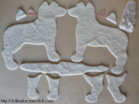 Si se les quiere hacer las almohadillas,se harán con fieltro, en ese caso,al princípio de este artículo,he puesto fotos de huellas de los animales de peluche más comunes y las huellas y almohadillas exactas,de las cuales podemos extraer los patrones de las almohadillas,de nuestra mascota de peluche.