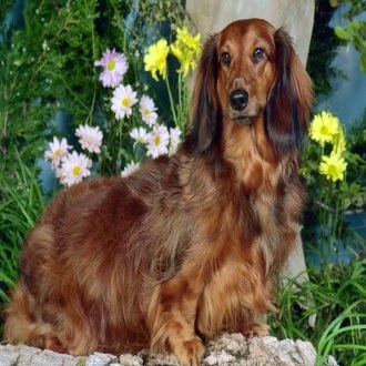 Miniatura de perro Dachshund de pelo largo de peluche.