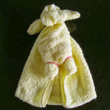 - Vuelva a doblar la toalla,una de las orejas se verá a la derecha en la foto.