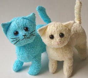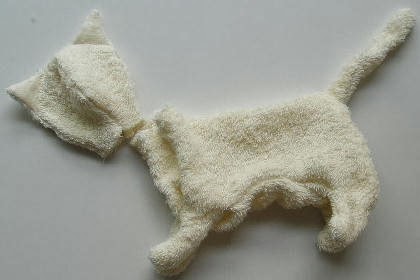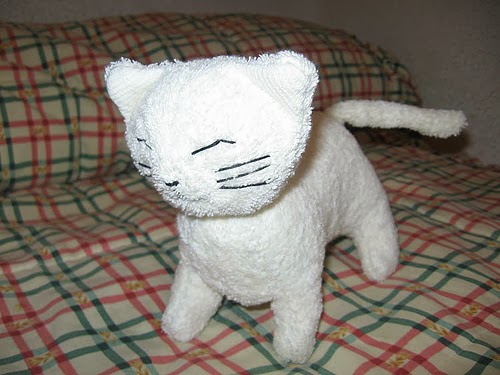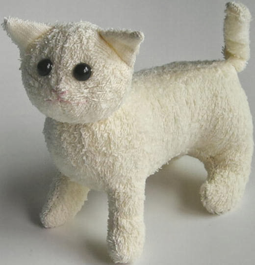 Gato relleno de tela de toalla ( tela de rizo). Es lavable. ( Patrón Gato terry ).