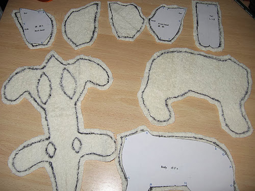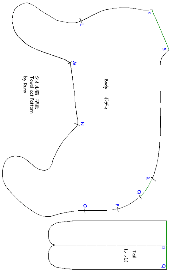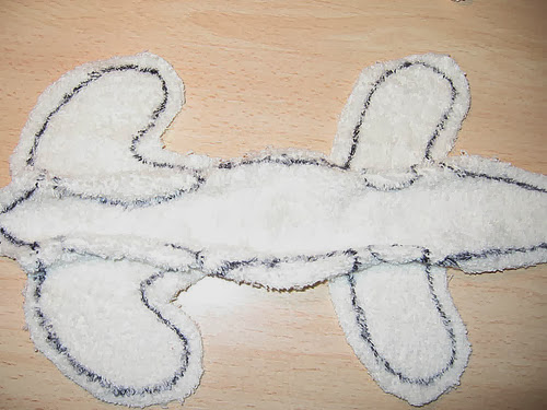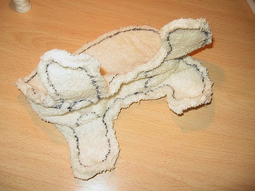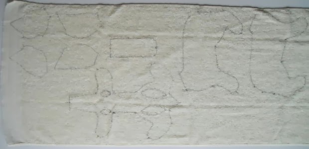 - Dibuje los patrones en una toalla, Teniendo en cuenta,que hemos de hacer los patrones dobles y en efecto espejo,para tener ambos lados iguales, en la parte del cuerpo que proceda.
