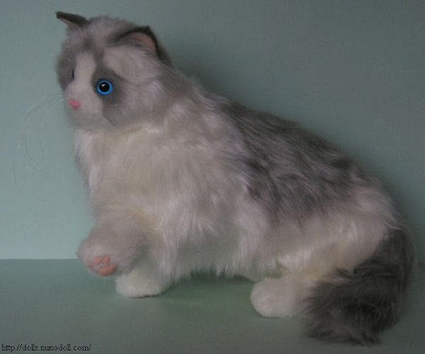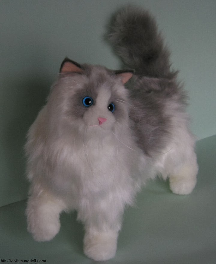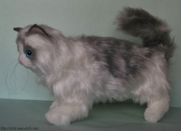 Su cabeza es casi la misma que el gato ragdoll , y el cuerpo es similar al gato terry . Tiene cables de polietileno como esqueleto y puede ponerse de pie, sentarse o acostarse. Un alambre de aluminio es fácil de plegar, pero a menudo se rompe y los cables rotos son peligrosos, los de polietileno rara vez se rompen. Sin embargo, es difícil mantener la flexión.