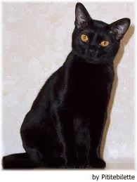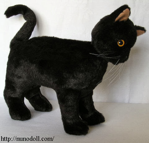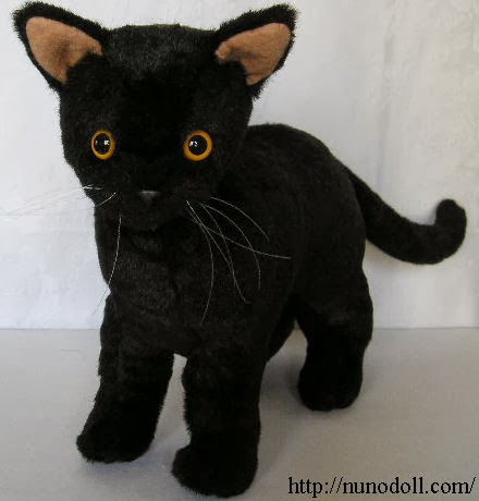El Bombay es un híbrido de American Shorthair y gato birmano, que tiene el pelo de ébano y ojos dorados de plástico.La nariz es de plástico. Altura 28 centímetros (desde las garras hasta la parte superior de la cabeza). Está hecho en tela de peluche negro corto. El interior de las orejas está hecho con fieltro.