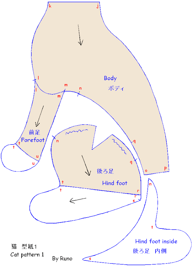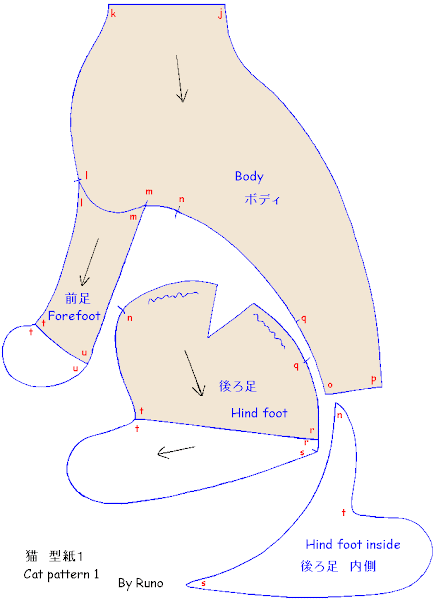 Patrón cuerpo ragdoll-cabeza terry.( El cuerpo se elabora como el del ragdoll,pero para la cabeza usamos el patrón Terry).