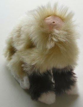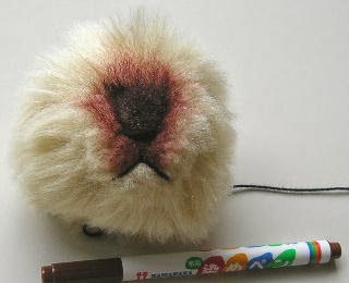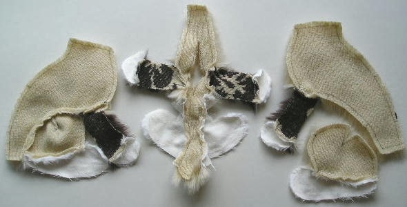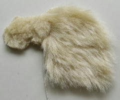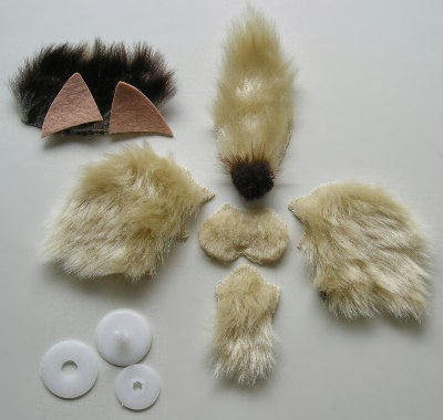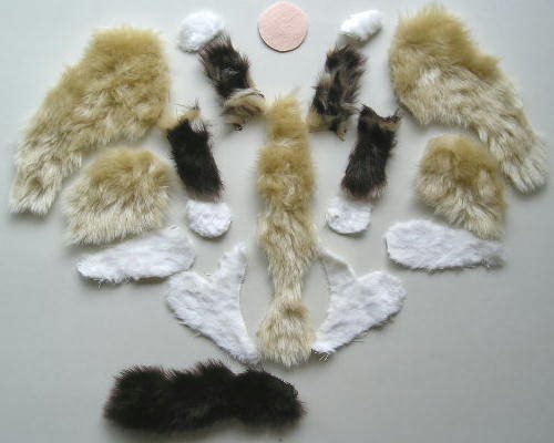 Cortar los materiales con los 4 mm de margen de costura.Recortar el pelo de la mejilla y la nariz.Se ha utilizado, para hacer girar la cabeza,la articulación de plástico.