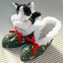 En las patas,podemos bordar con hilo de color,la simulación de los " deditos" del gato,así queda más real.