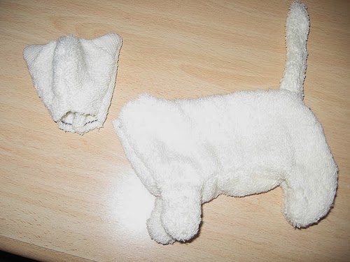 - Use un lado de una toalla. La parte sin pelos se convierte en los oídos en el interior.