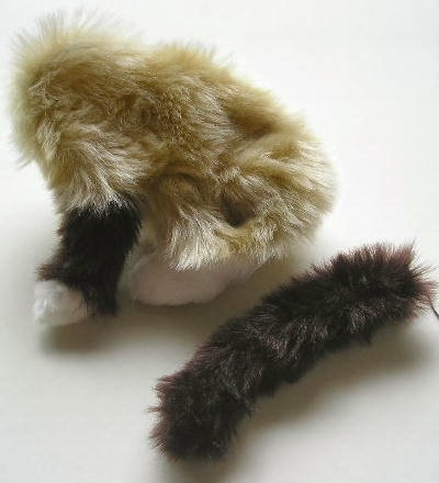 Haz un pequeño agujero en el cuello, para posibilitar y sostener la articulación del cuello.Coser la cola y una vez hecha,pegarla al cuerpo.