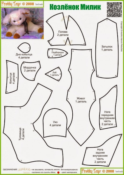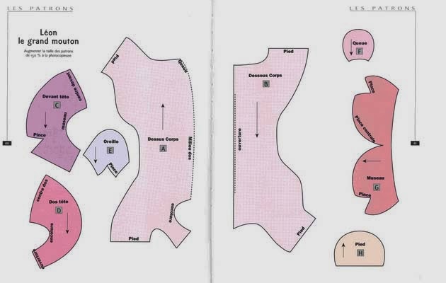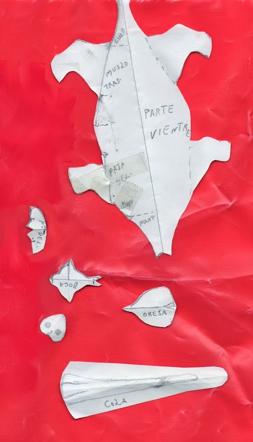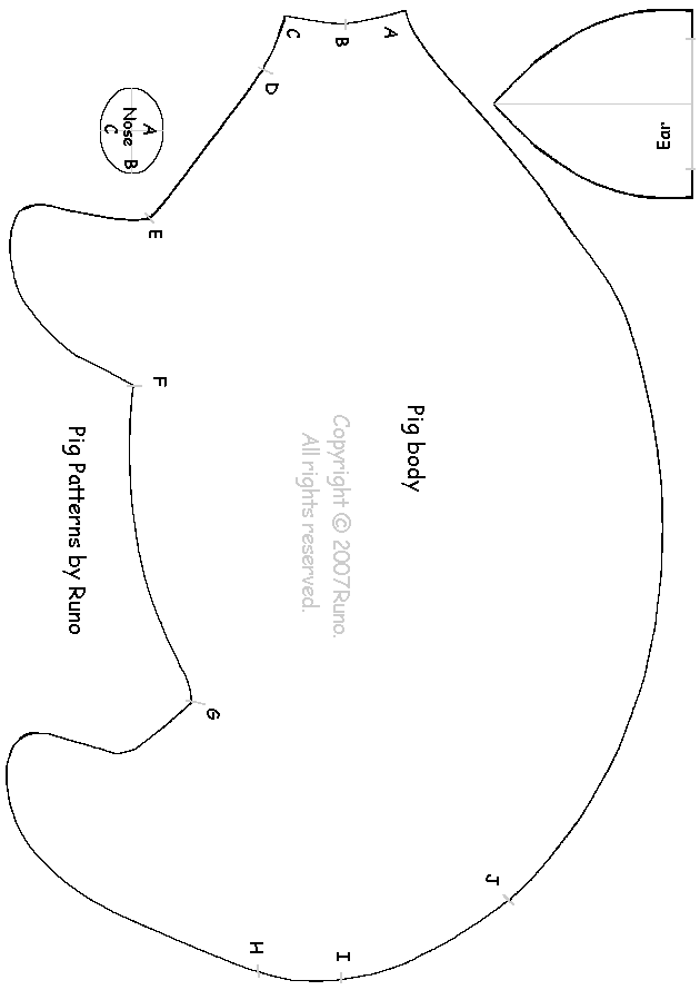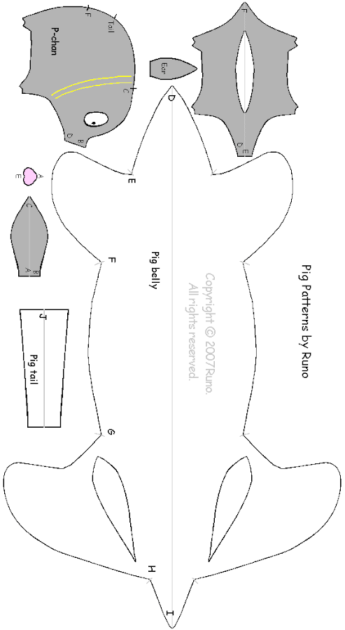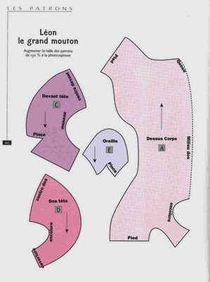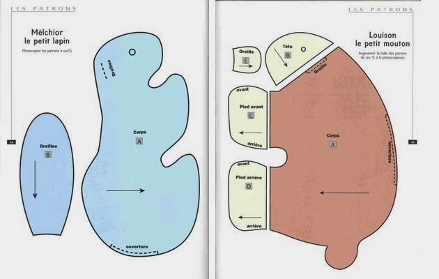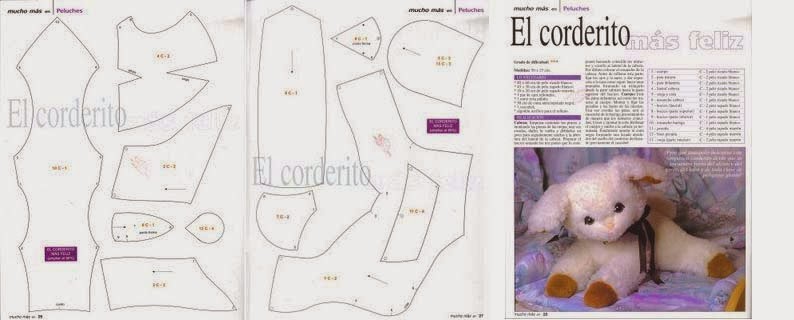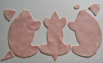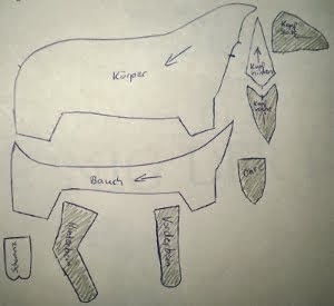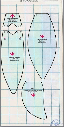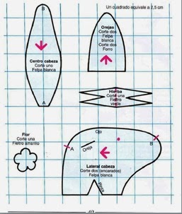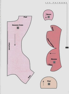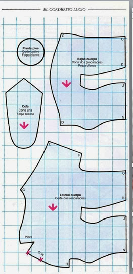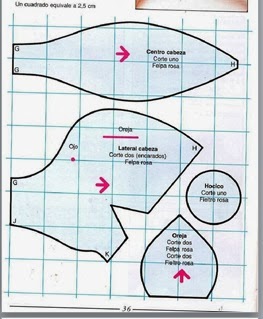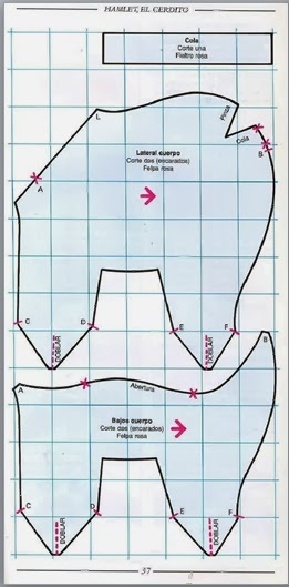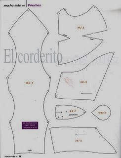 Cortaremos dos piezas del patrón del cuerpo y 4 de las orejas.Este patrón está en 2d y falta el rabo y algunos detalles,los cuales están modificados a partir de éste en la parte de abajo.