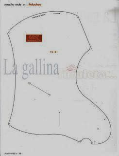 Coser las alas, darles la vuelta y colocarlas en los lugares indicados por las marcas correspondientes. Unir la pieza de la cola al cuerpo en ambos lados y seguir la costura de la parte posterior de la gallina. Unir a continuación la pieza de base al cuerpo después de haber unido las patas pero dejando una abertura. Dar la vuelta y rellenar de algodón, cerrando posteriormente dicha abertura a punto colchonero.