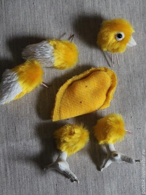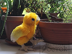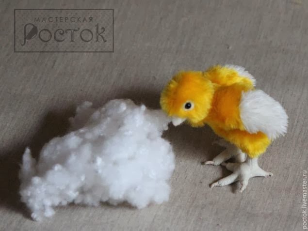 Otras variantes se pueden hacer,rellenando menos las patas. El cuerpo se cose de felpa, el pico de epoxy modelado en arcilla. También lleva una armadura de alambre para subir alitas,etc. El pico es de masilla y pintado con colores acrílicos y garras hechas de masilla de madera.