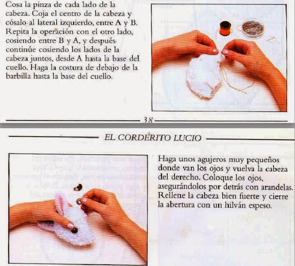 Con la hebra de fieltro o lana, formaremos ambos párpados.Rodearemos el ojo para medirlo y haremos la hebra y coseremos alrededor con puntada muy corta y con cuidado,para hacer ambos ojos más reales.
