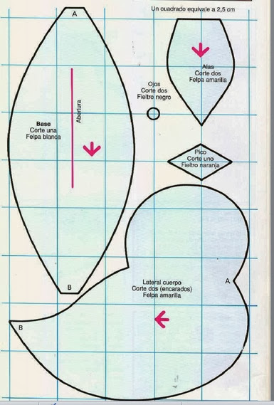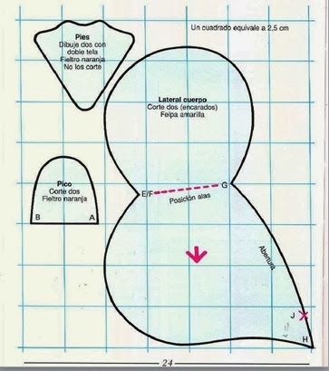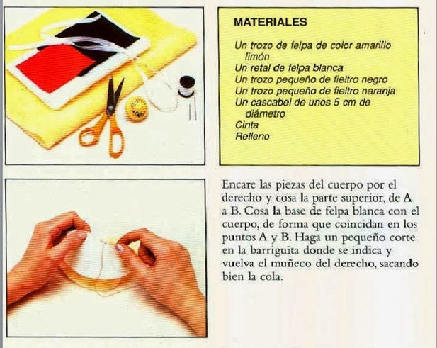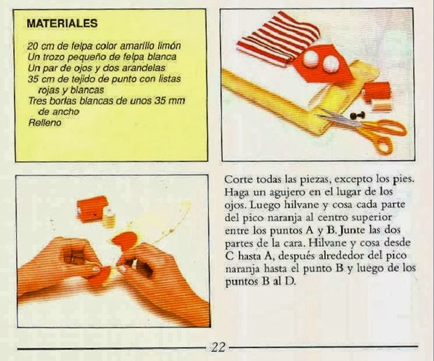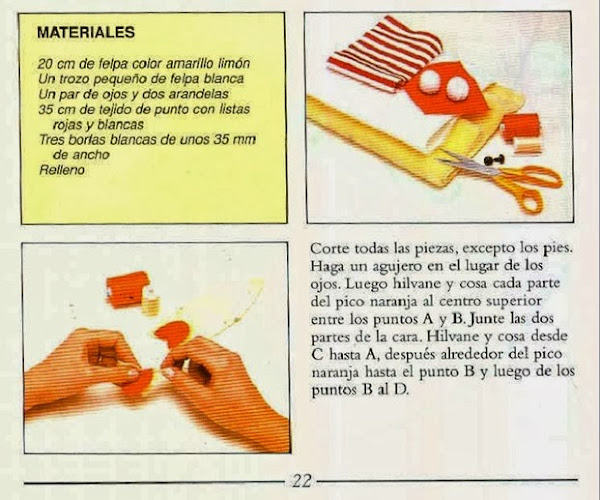 - Tela de skay o similar de color naranja (aquí se ve blanco pero el color naranja dá más realismo),para hacer el pico.