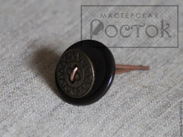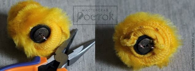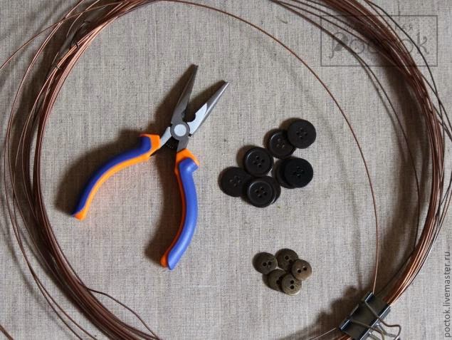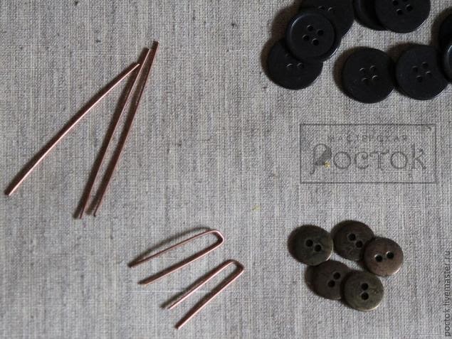 Cortaremos 5 partes de alambre alrededor de 6 -7 cm cada uno y doblar formando una "n". ¡Muy importante! La distancia entre las partes dobladas debe cumplir con los agujeros del botón.