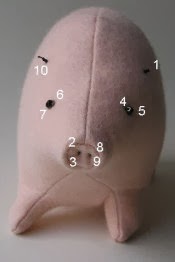 7. Coser la naríz a la cara.