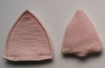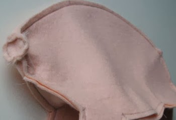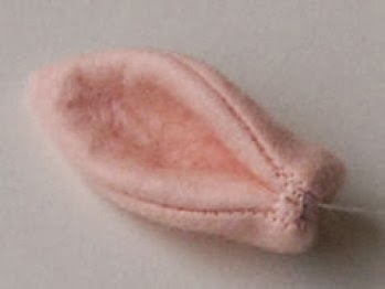 10. Doble una oreja, y cósala a la cabeza,hacer lo mismo con la otra oreja.