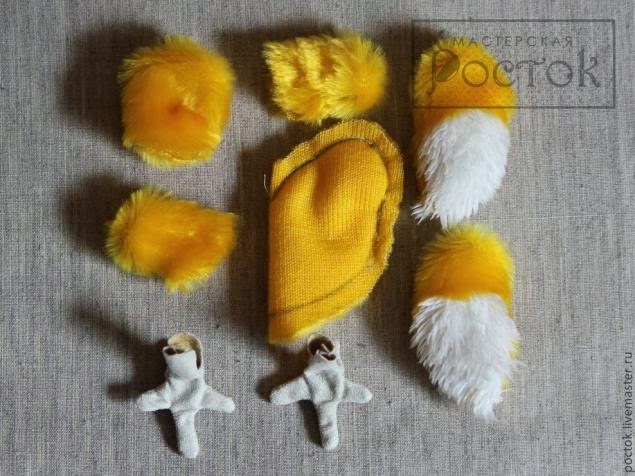 - Tela de skay blanco o amarillento (o similar) para hacer las uñas de las patas.