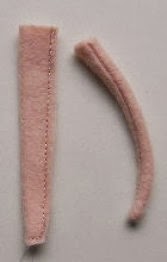 Coseremos la colita y del mismo modo, se procede con las alas y las patas.Rellenaremos el cuerpo y coseremos con puntada oculta el lomo del cuerpo,por donde habíamos dejado el sítio para el relleno y demás.