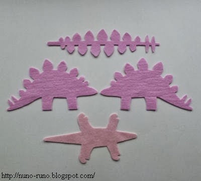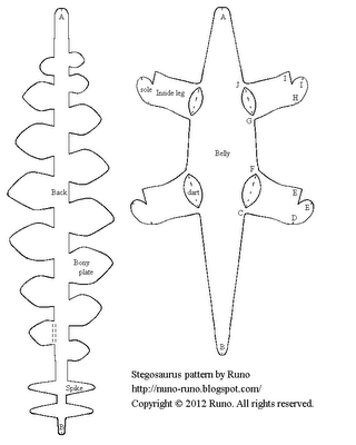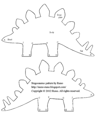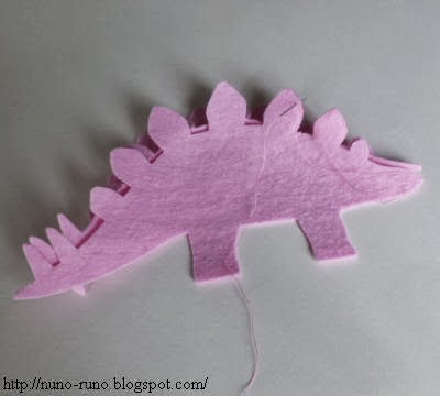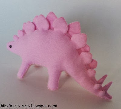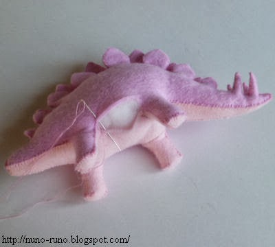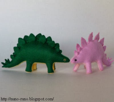Fije los ojos y terminado.Estegosaurio Verde, ( hecho igual,con diferente color de tela).