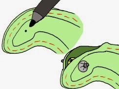Doble la placa ósea de la espalda y coser 1 milímetro en su interior. Este proceso hace que las placas queden de pie.